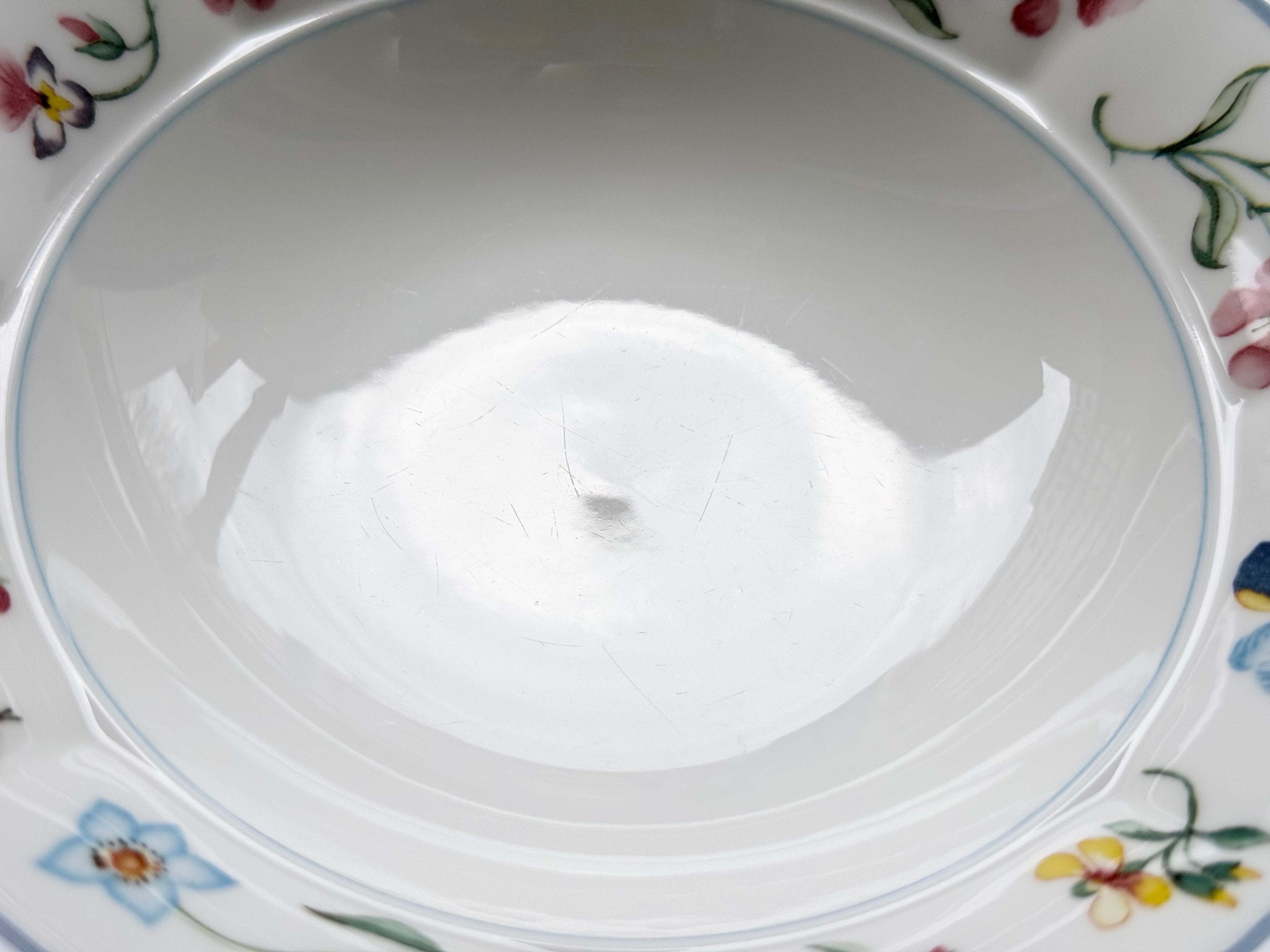 nicht beschädigt aber mit deutlich sichtbare Gebrauchsspuren wie Abrieb durch Besteck oder durch aufeinander stapeln des Geschirrs. |